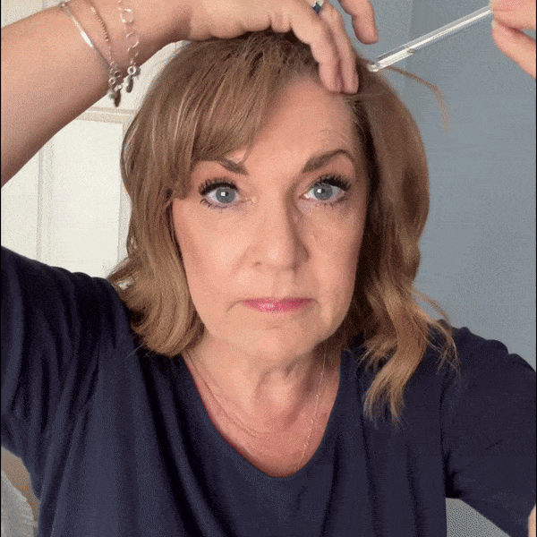 Aplicá unas gotas directamente en el cuero cabelludo, enfocándote en las zonas con menos densidad.